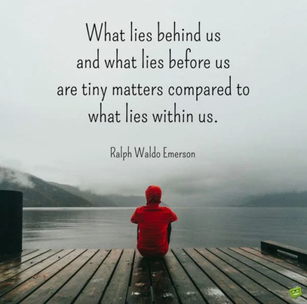 This quote from Ralph Waldo Emerson speaks to the strength of the human spirit and the power of inner character. What lies behind us” refers to our past: our experiences, mistakes, or even achievements. “What lies before us” represents the future: our fears, hopes, or uncertainties. Emerson’s point is that neither the past nor the future defines us as much as our inner qualities: our courage, integrity, mindset, and resilience. True power and fulfillment come from within. The past cannot hold you back unless you let it, and the future doesn’t need to intimidate you if you trust your inner strength. Who you are inside (your values, faith, and determination) matters more than external circumstances or timelines. It invites you to shift focus away from regret or worry, and toward inner peace, confidence, and purpose.